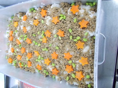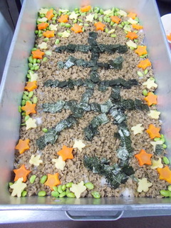 各学年の演目に合わせた図案をそぼろで表現しました。