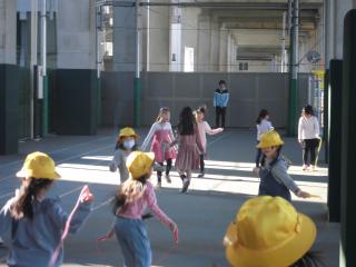休み時間に縄跳びができ、子どもたちが練習しています。