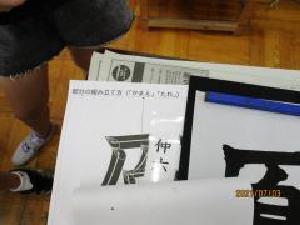 毛筆書写で『原』をやりました。文字の部品である「かまえ」「たれ」の組み立て方を大事にし、真っ黒になりながらも力強く書きました。