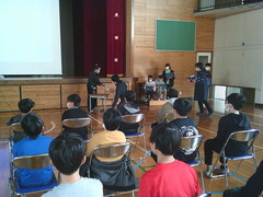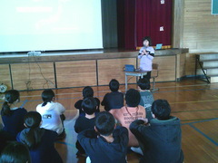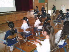5年生が英語で自分の行きたいところを発表したり