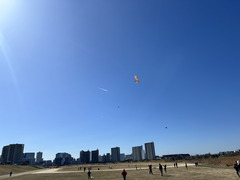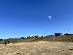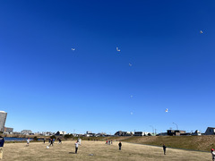 六郷土手まで遠出し、広大な土地で凧揚げをしました。