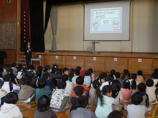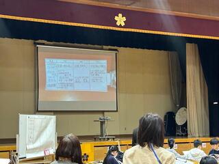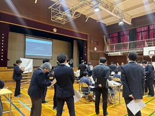 体育館で大勢の先生方が見守る中、6年生の子供たちは、緊張しながらも一生懸命学習に取り組んでいました。