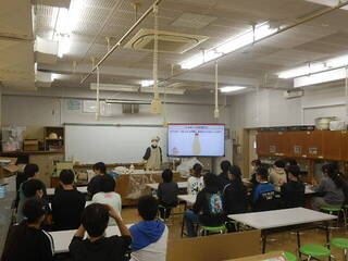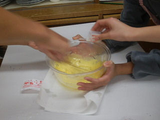 11月27日(木曜日)はキューピーマヨネーズの講師の方がいらっしゃって、マヨネーズを卵から作る家庭科の学習を行いました。