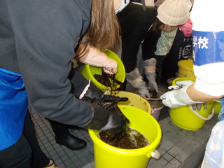 1月23日(火曜日)、今年度も「大森海苔のふるさと館」にて全校児童が海苔付けを体験しました。朝早くから地域や保護者のボランティアの方々が準備をしてくださったおかげて、昨年度同様、全校児童一人ひとりが貴重な体験ができました。今回は高校生5名もボランティアに参加してくれて、改めて中富小学校は地域の結びつきが強いことを認識しました。後日出来上がった乾海苔をこどもたちは喜んで自宅に持ち帰りました。