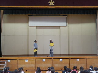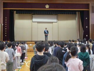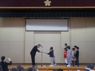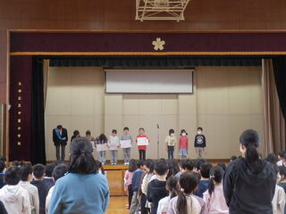 1月19日(月曜)の朝会で、毎朝児童が校門で挨拶をしていることが認められ、「小さな親切」運動本部より表彰されました。