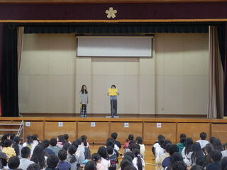 また、朝会では4年生の児童より、3学期の目標について話もありました。