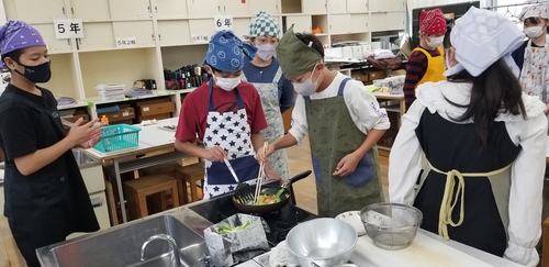 4年ぶりに再開された調理実習。子どもたちは、友達と一緒に調理し、一緒に食べることをとても楽しみにしていました。今回の実習は「野菜いため」。グループごとに食材を決め、調味料を計算し、タイムスケジュールを立てて調理しました。「塩、こしょうだけなのにおいしい!」「ちょっと味が濃かったかも・・・。」などなど。 夏休みには、「お家でおかずを作ろう」という課題もあります。経験をたくさん増やして成長してほしいです。