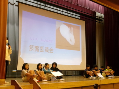 10月7日(月曜)委員会発表で飼育委員会の発表を行いました。