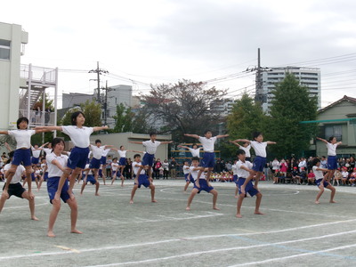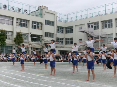 5.6年生は、「一蓮托生」をテーマに、全員で気持ちを一つにし、組体操を披露しました。