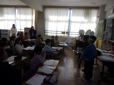 3時間目の生活科の授業で、近隣の幼稚園3円の年長さんを招いて、新1年生体験会を行いました。