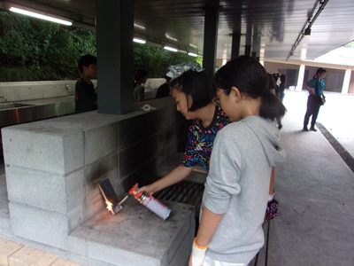 宿舎の方々に炊事場の使い方や道具の使い方、火の起こし方や調理の仕方などを教えていただきました。