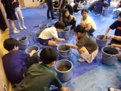第一回では種植えを行い、第二回では成長した稲をバケツに植え替えました。