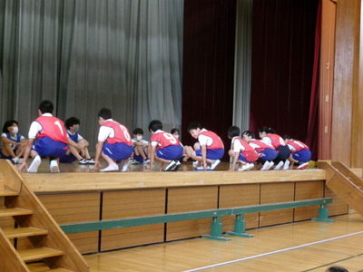「ピッ」笛が一回なったら、「用意・開始」の合図です。ようい、ピッ!でスタートです。