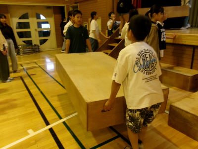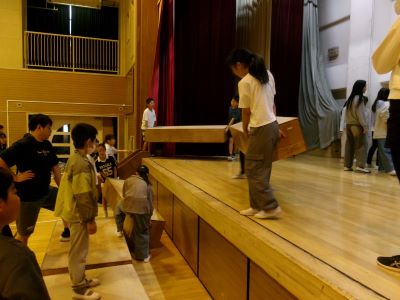 11月21日(金曜)、22日(土曜)に行われる学習発表会の舞台設営を 6年生が準備しました。