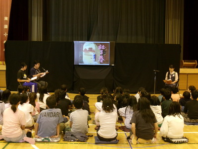 また、教員による朗読も行われ、いつもとは違う先生の姿にこどもたちは大喜びで、物語の世界に引き込まれていました。