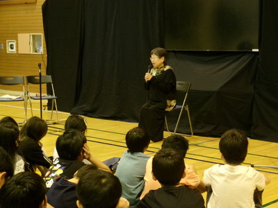 当日は、本校卒業生であるストーリーテーラーの末吉先生をお招きし、ユーモアあふれる本の朗読を聞かせていただきました。
