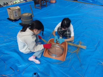 お米になるまでの大変さを実感し、たくさんの笑顔と驚きが見られました。