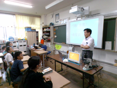 電子顕微鏡を使い、口腔内にいるミュータンス菌の様子を見たり、ジュースやスポーツドリンクを飲むと歯にどのような影響があるかを聞いたりしました。