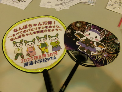 今年の夏祭りは、南蒲小学校の公式キャラクター「なんぽちゃん」のぬりえを展示したフォトスポットを企画してくださいました。