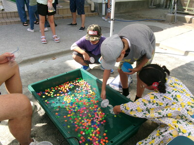 たくさんの楽しいゲームやクイズに参加したこどもたちは、最後に冷たいかき氷をご馳走していただき、おいしそうに頬張っていました。