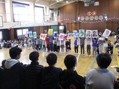 今年度最後の児童集会は「伝言ゲーム」をしました。