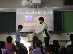 全国タイピング大会の表彰(2年生5名と3年生1名)を行いました。