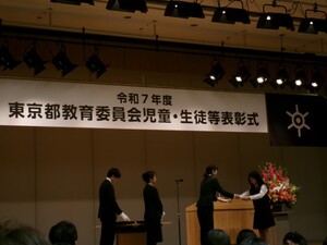 7日の土曜日に合唱部の代表児童と音楽の教員が都庁での表彰式に参加していただいてきました。