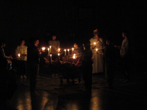 キャンドルファイヤーは火の神様からいただいた火を各校代表1名の児童が点火し、始まりました。