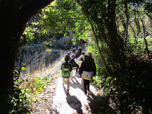 午前中は晴天コースのハイキングに行ってきました。休憩をこまめに取りながら2時間ほどのハイキングをしました。蓮着寺境内でお弁当を食べ、学園に戻ってきました。
