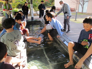 合同移動教室は区内9校からこどもたちが100名ほど集まって行われます。