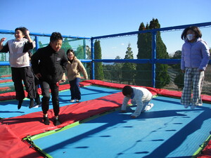 合同移動教室3日目、本日もよい天気です。学園で閉園式をした後、ぐらんぱる公園に行き、トランポリンや長い滑り台などで2時間たっぷり遊びました。予定通りの時間でぐらんぱる公園を出発しました。