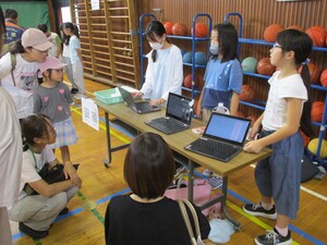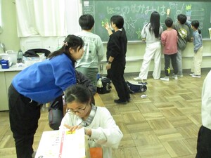 西六小はイベント部の皆さん、ボランティアの保護者・卒業生の皆さん、本校教員もお手伝いに加わり「スライムづくり」のコーナーを出し、大変賑わっていました。