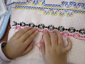 集中して一針、一針丁寧に取り組んでおり、少しずつ綺麗な模様ができあがってきています。