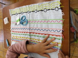 四組では1年から6年までスウェーデン刺繍に取り組んでいます。