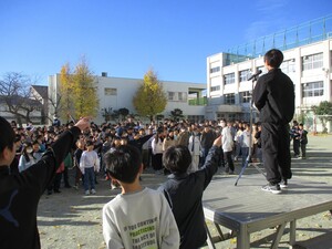 1回目はいつもの音楽朝会通りにみんなで歌いました。