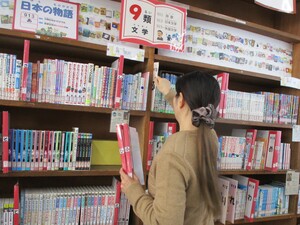 本日は本棚のサイン板を作成し、本棚にセットしました。正面からでも五十音の分類が分かりやすくなりました。