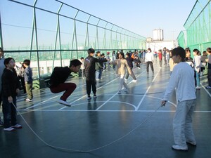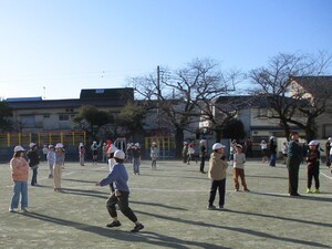 2年・5年は屋上で長なわ跳び、3年・4年は校庭で氷おにをしました。