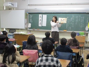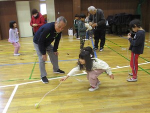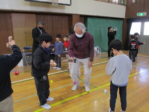 1年生は地域の方をお招きし、昔の遊びを教わりました。
