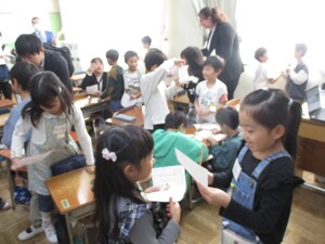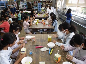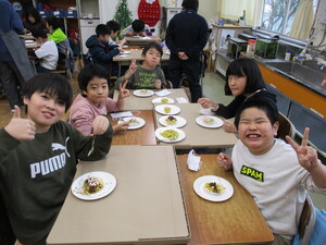 教室の様子を見に行くと、「校長先生、全部食べたよ」と報告に来る子、おかわりをする子もいました。
