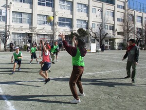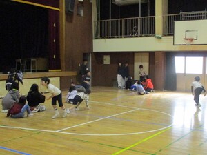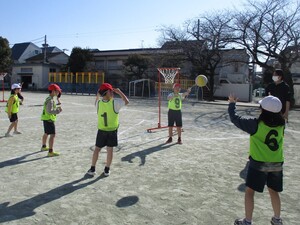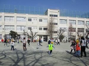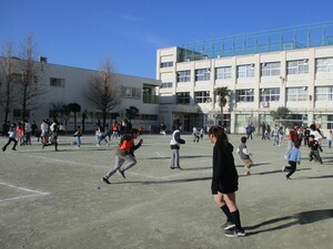 今日は立春です。朝の時間にペア学年に分かれて体を動かしました。