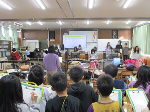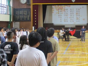 音楽の教員からこどもたちに、歌のポイントやにこやかな表情で歌うと声もよくなることを伝えました。