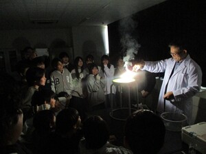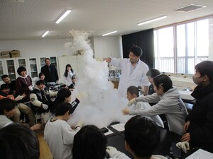 理科の授業はドライアイスの性質を探る実験を通して、確かめていく流れでした。実験のたびに6年生から驚きの声が出ていました。