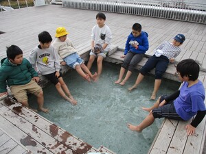 午前中はグループ行動で天空橋にある羽田イノベーションシティを散策し、足湯に浸かったり、おやつを買ったりしました。