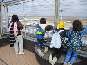 その後、羽田空港第1第2ターミナルに行き、グループごとにお昼ご飯を食べ、展望台で飛行機の発着を間近で見ることができました。