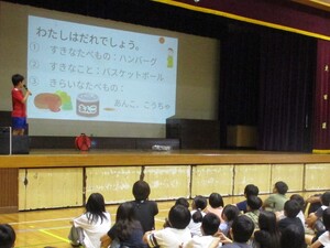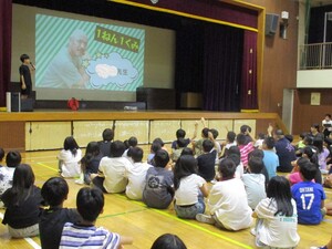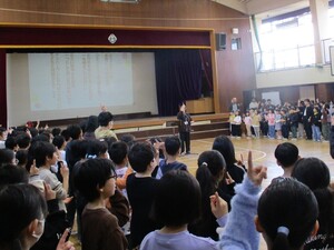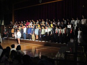 代表委員による進行で会は進み、スライドで学校の様子を紹介したり、みんなで校歌を歌ったりしました。