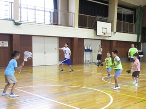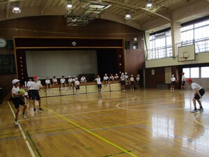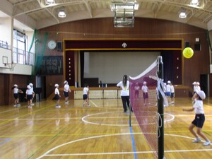 体育館スポーツは体育館全面を使ってのボールゲームでした。