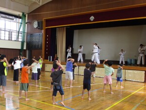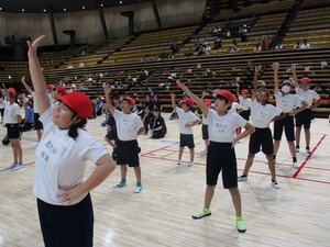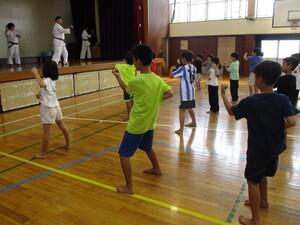 集団行動の基礎・基本である「気をつけの姿勢」「休めの姿勢」「前へ ならえ」「右向け 右」「回れ 右」を全体で練習しました。