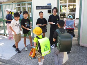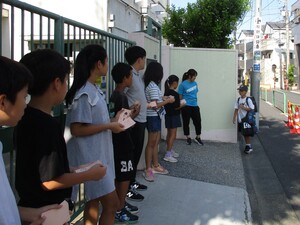 今日は朝の時間、北門に立ち、防災訓練のチラシを地域・保護者の方にお渡しさせていただきました。