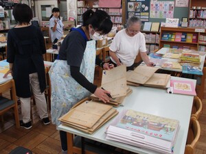 ボランティアの皆様が読み聞かせに続いて、図書整備を行ってくださっていました。