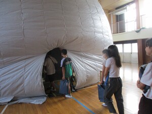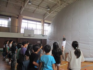 講師の方に来ていただき、体育館に直径10mのドームを設置していただきました。